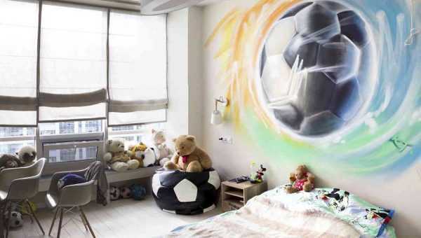 Вы можете прибегнуть к спортивной тематике и воссоздать в детской баскетбольную площадку с видом на Чикаго или Нью-Йорк. Если ребенок увлекается роботами или фэнтезийными героями, то можете выбрать эти мотивы. В интернете есть масса стильных и красивых примеров.