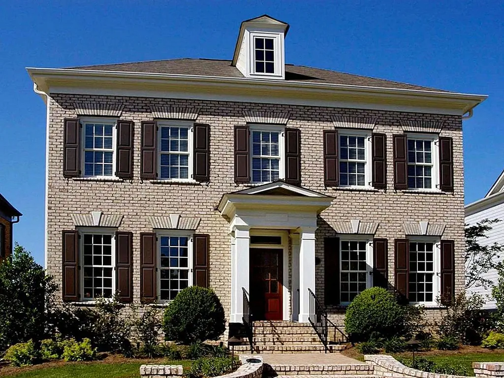 Как упоминалось выше, одной из определяющих характеристик грузинских домов является их симметрия. Входная дверь посередине пахнет, и если на одной стороне шесть окон, то на другой — шесть окон. У меньшего грузинского дома мог бы быть простой плоский фронт, но даже более крупные поместья придерживаются симметрии.