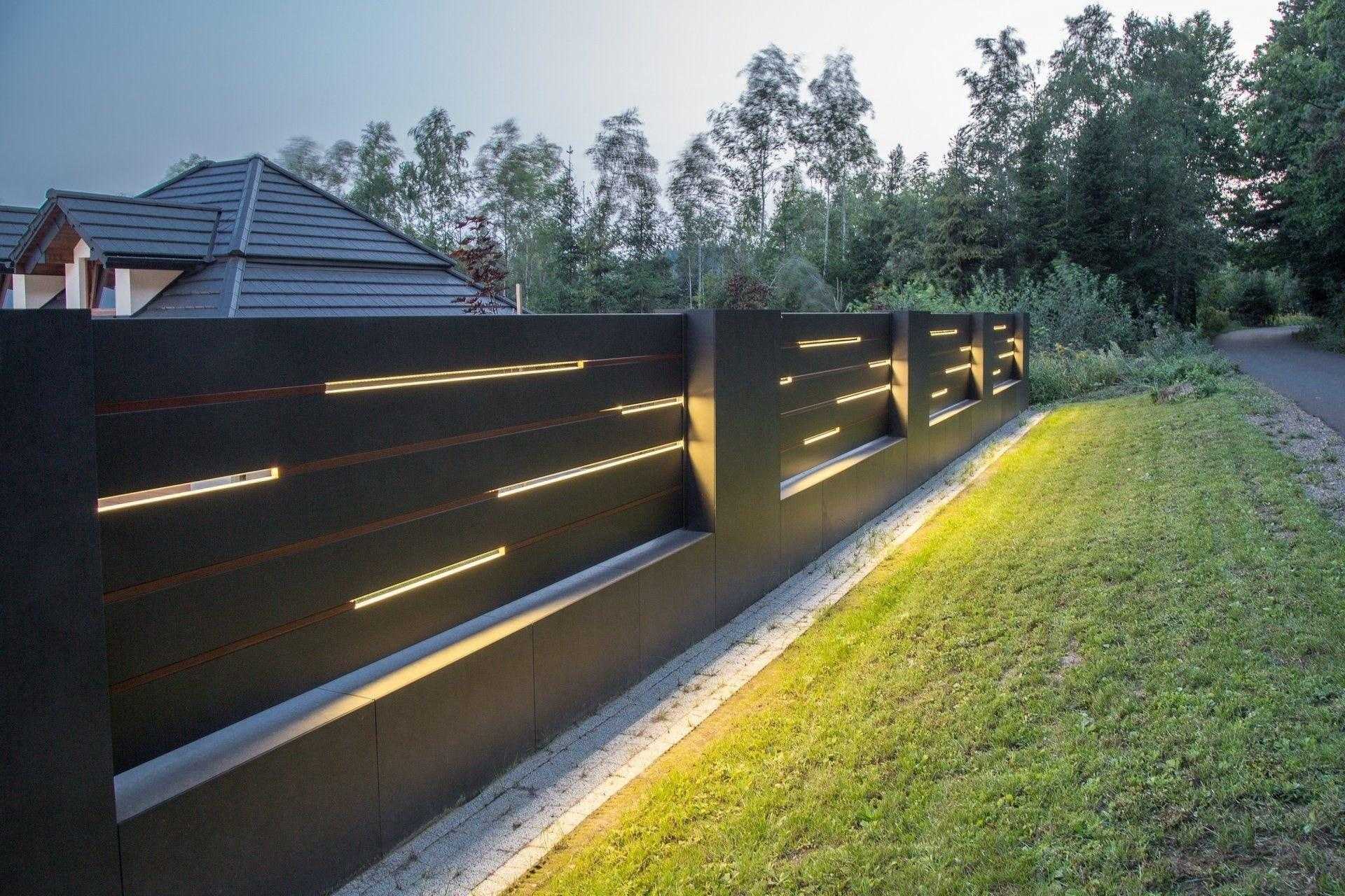 Обыкновенный профнастил черного цвета, грамотно вписанный в ландшафт и экстерьер, превратится в элемент модерного дизайна.