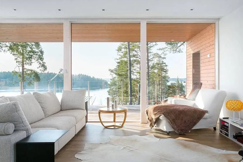 Скандинавские дома обычно двухэтажные, с мансардой, масштабным панорамным остеклением, двухскатной крышей. В современной технологии строительства чаще всего используются керамические блоки. Но встречается кирпич, камень, брус и даже газобетон.