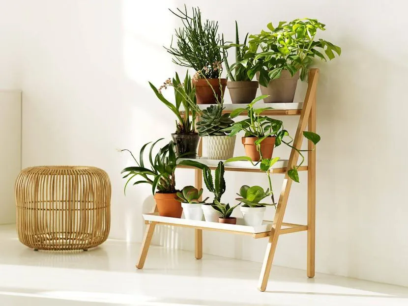 Настольные. Подходят для установки на столе, комоде и другой крупногабаритной мебели. Настольные модели зачастую имеют многоярусную или фигурную форму. Подставка, предназначенная для крупных вазонов, будет иметь гармоничный вид только в просторном помещении.