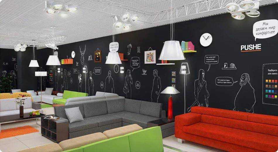 разработка дизайна интерьера магазина мебели – одна из самых простых задач. Для ее решения от вас требуется лишь расставить реализуемую продукцию таким образом, чтобы создать по-настоящему домашний уют. Можно эффектно распланировать торговый зал таким образом, чтобы установить в соответствующие зоны кухонные и спальные гарнитуры, комплекты для прихожей или коридора, мягкие диваны и кресла;