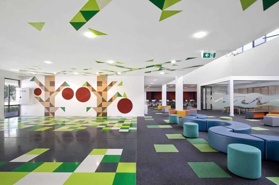 Ещё одна современная школа, где дизайн заточен на то, чтобы мотивировать детей коммуницировать между собой и с окружающей средой, активно участвовать в учебном процессе.