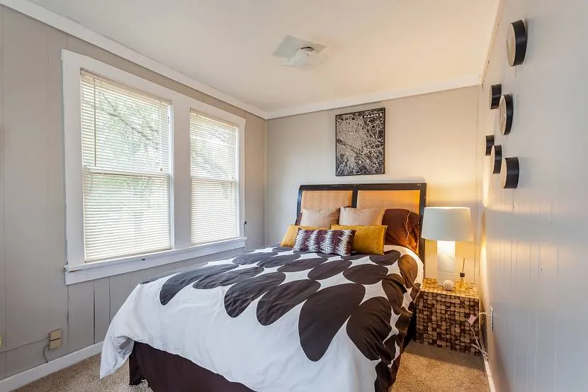 В таком стиле интерьера предпочтительнее использовать светлые тона и акцентировать внимание на спальном месте. Для этого используют декорирование подушками, накидками и покрывалами