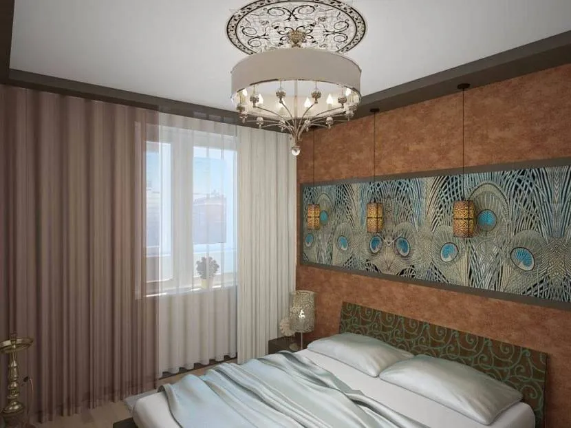 Оформление узкой спальни с декорированием и акцентамиИсточник dekormyhome.ru