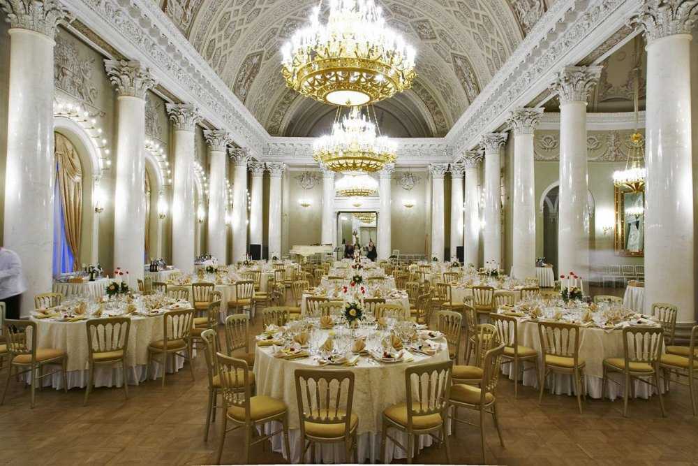 - Белоколонный зал – 445 кв. м. Самый большой зал дворца с 24 колоннами.