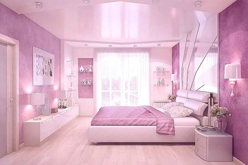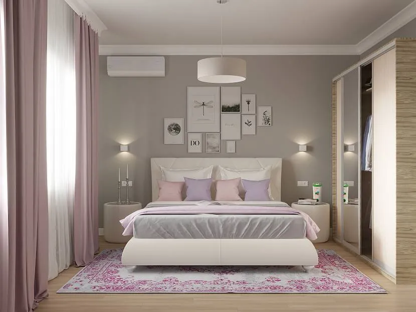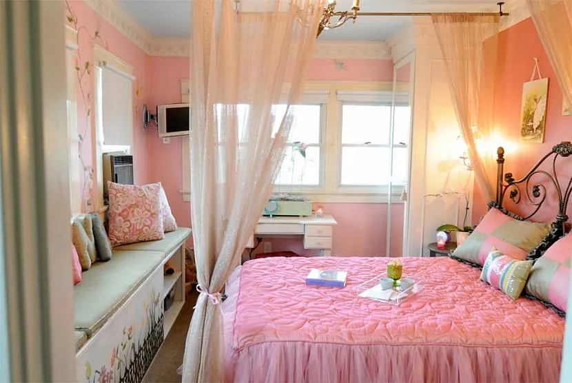 Дизайн узкой спальни в розовом цвете с декоромИсточник yellowhome.ru