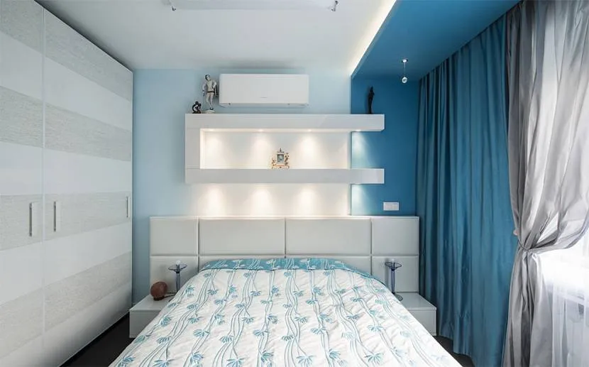 Узкая спальня с дизайном в голубом оттенкеИсточник photointeriorpro.ru