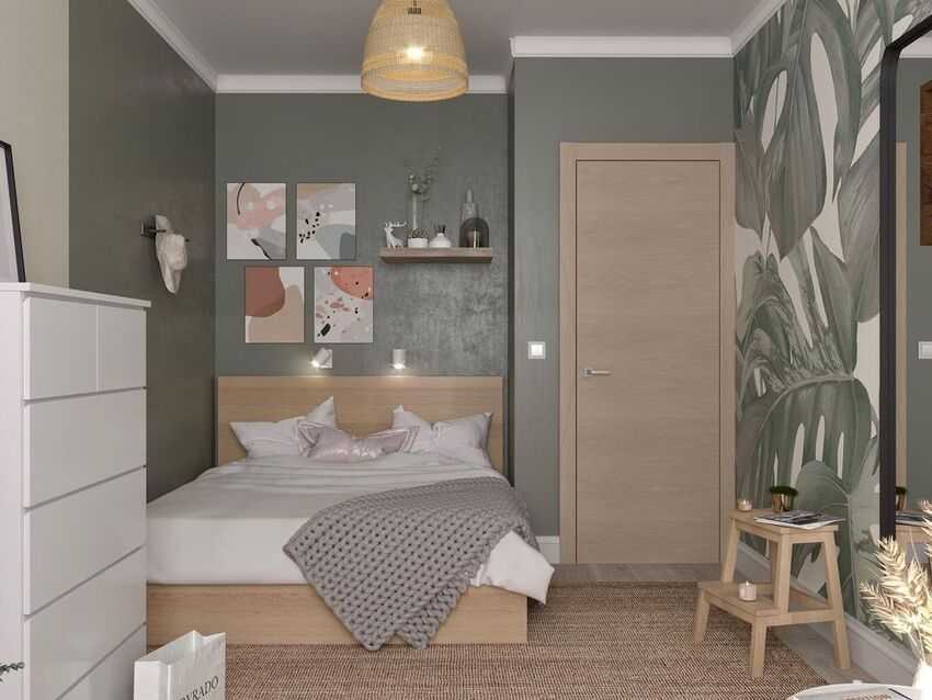 Если вы мечтаете о серо-зеленой спальне, панели станут отличным решением. Вы можете выбрать виниловую отделку в пепельном оттенке. Панели этого типа просты в установке — вы можете расположить их одним щелчком. Они также характеризуются приятной, теплой поверхностью и устойчивостью к грязи.