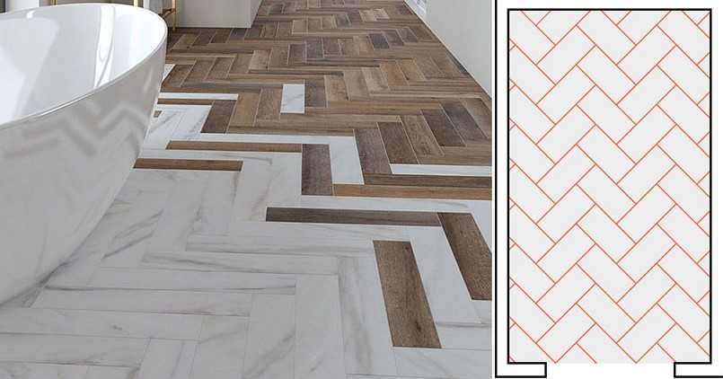 геометрическое расположение поверхности пола и стен – если не соблюдается правильность прямых углов или есть в наличии дефекты поверхностей, плитка елочкой поможет не только сгладить, но и полностью замаскировать их.