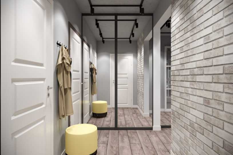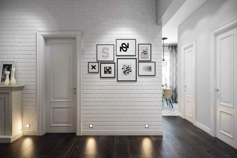 В небольших помещениях коридоров лучше всего будет смотреться белый декоративный кирпич с глянцевой поверхностью. Такой дизайн поможет увеличить площадь, сделать пространство более свободным, что характерно для современного минимализма, а также скандинавского стиля.