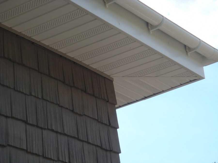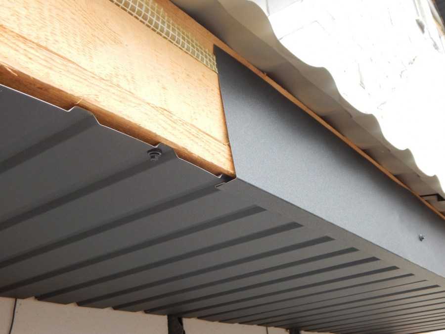 - Самый элементарный вариант – оставить щель между стеной здания и подшивкой. Если для подшивки используется профнастил, то этот зазор должен быть от 0,6 до 1,2 сантиметра, для вагонки или сайдинга – от 1 до 1,5 сантиметра.