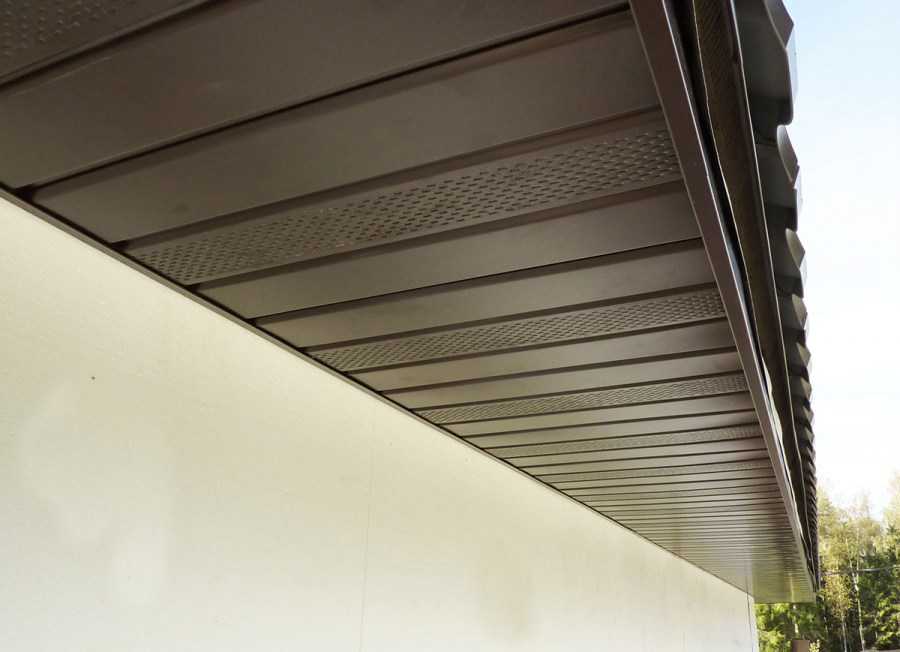 Карнизный свес осуществляет подачу свежего воздуха в полости кровли, пространство чердачного помещения. При плотной забивке, неправильном монтаже — не будет вентилироваться «кровельный пирог», начнет скопляться влага.