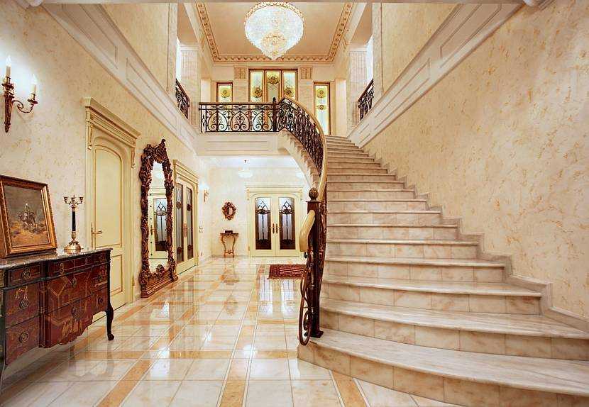 Буйство света добавляет гармонии и уюта холлу с лестницей в классическом стилеИсточник barahlo.net