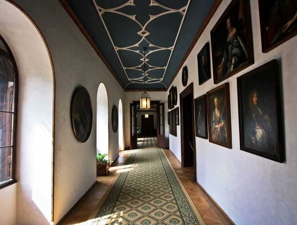 Коридор в замке Сихров (Чехия) имеет смешанное оформления. Стены оформлены в стиле обычного классического дворца, зато потолок имеет характерный готический орнамент. Такие орнаменты получили распространение в замках XIX века, периода историзма.