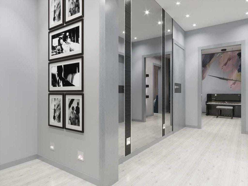 Перфекционизм в дизайне – наше всё. В узких коридорах очень хорошо смотрится правильная геометрическая расстановка. Ровные линии, прямые углы, спокойное освещение и пара идеально развешенных картин сделают своё дело. Убедитесь сами!