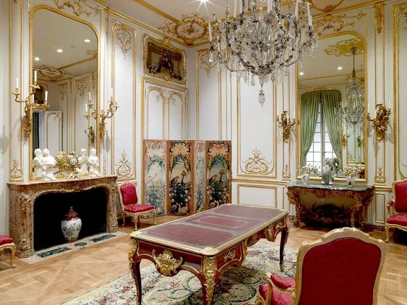 Все детали подбирались с особенной тщательностью. Например, гостиную украшает французская хрустальная люстра, аналог люстры XVIII века; резной потолок из ореха был приобретён на аукционе в Лондоне; на стенах — шёлковый жаккард от Tassinari&Chatel, воспроизведённым по эскизам XIX века.