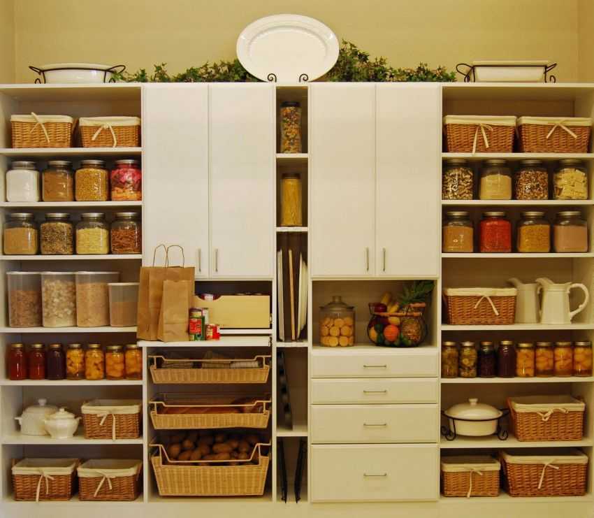 Кухонные углубления служат местом размещения дополнительных приспособлений и декоративных украшений. Большие глубокие ниши реально переоборудовать в мини-кладовую. А если ниша является полноценным помещением в стене, то тут стоит хранить всевозможные хозяйственные приспособления, а также бутылки, кухонную бытовую технику большого размера, различные корзины, закрутки на зиму. Главными мебельными элементами могут выступать стеллажи и открытые шкафы, настенные и подвесные полки. Большую кухонную кладовую иногда отгораживают занавеской или раздвижной дверью. Стены необходимо оборудовать дополнительными крючками и подставками. Не будет лишней большая рейлинговая система с широким функционалом. Кладовка на кухне поможет упорядочить все помещение, даст возможность освободить обычную кладовую в коридоре под увеличение жилого пространства и т. д.
