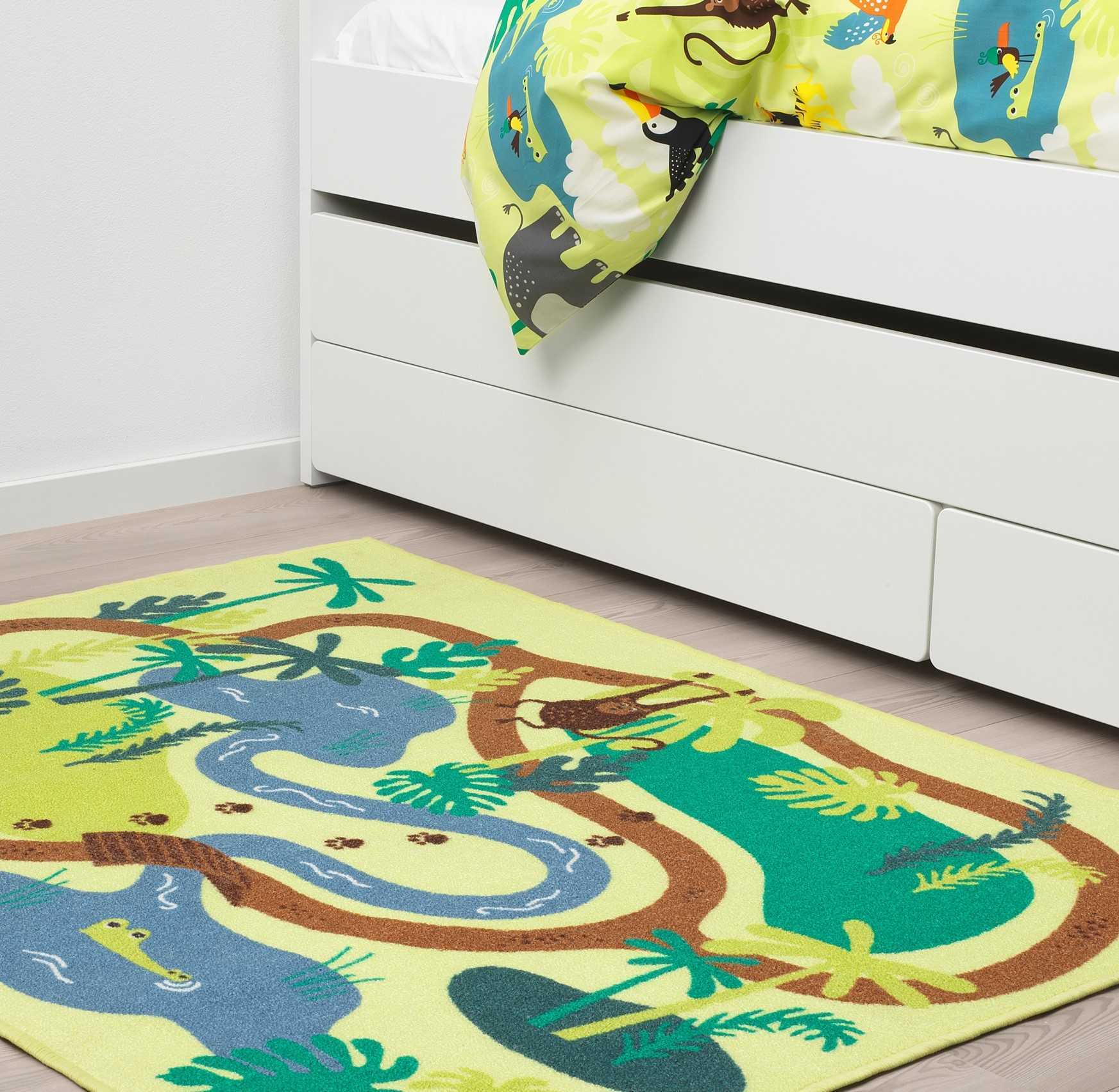 Экология. Все товары изготовлены из экологичных материалов. А так как исследования показывают меньшую концентрацию пыли в помещениях, имеющих ковровое покрытие, по сравнению с твёрдым, детский ковёр ИКЕА будет незаменимым элементом интерьера в комнате ребёнка.