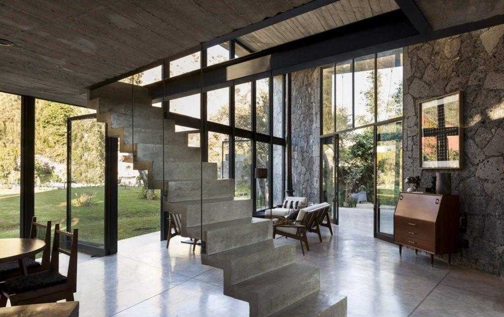 Одномаршевая лестница с монолитным косоуром и ступенью сквозного типа без подступенка Такие лестницы создают красивый эффект парящих ступеней и отвечают на вопрос как залить бетонные ступеньки небольшим количеством бетона |