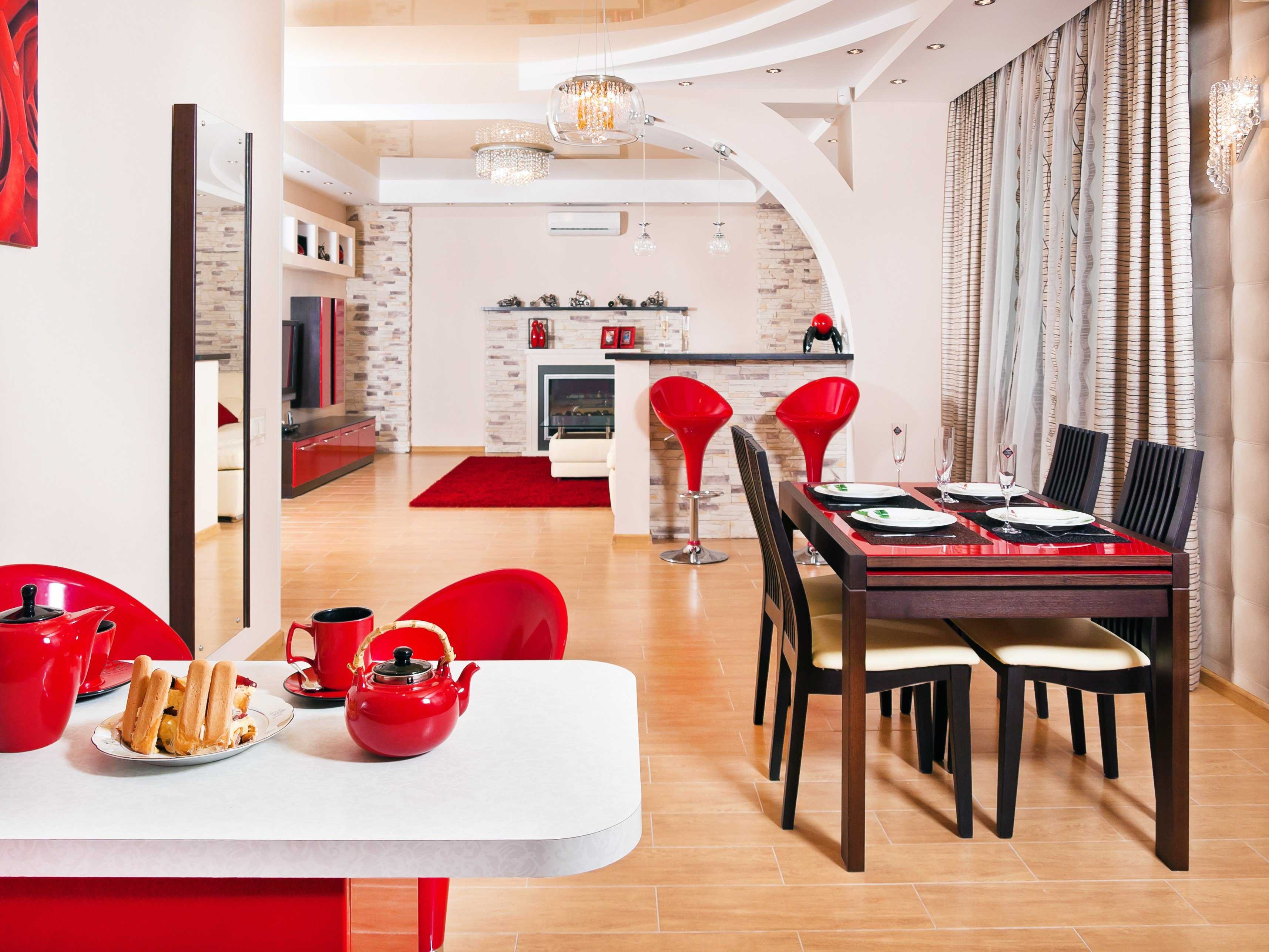 Оформление обеденной зоны в красном тоне: как выбрать стол и стулья