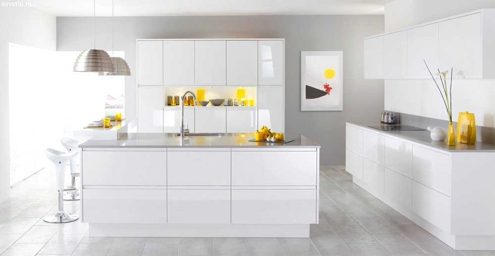 Белый может стать основой любого стиля: кантри, хай-тек, классика, модерн (про популярные стили интерьеров кухонь мы написали статью ранее). Чтобы со временем фасады не пожелтели, их следует ограждать от воздействия прямых УФ-лучей.