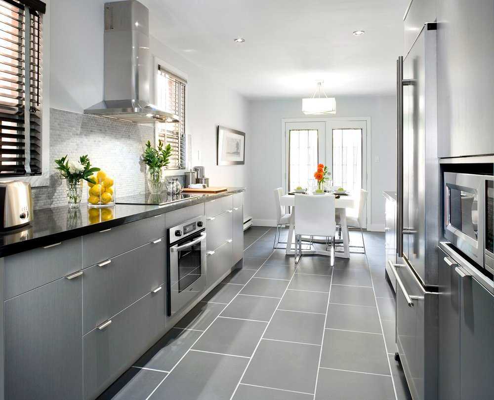 Многогранные оттенки серого – находка для ценителей холодного функционального минимализма и хай-тека. Благодаря белому такая кухня не кажется слишком мрачной, выглядит светлее и легче. Это хороший выбор, если окна выходят на солнечную сторону и в комнате всегда светло и жарко – иллюзия прохлады и легкости обеспечена.