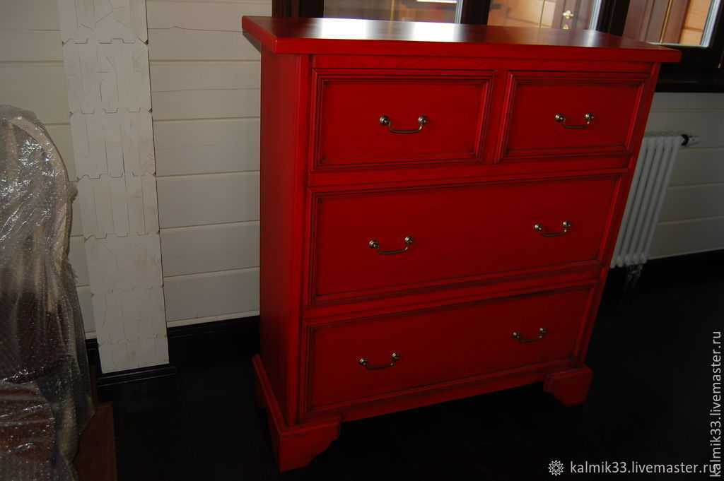 Это относится не только к окраске комода, а также к тому из чего он сделан, его дизайн, украшение. Бывает так, что весь гарнитур в комнате состарен и поэтому можно приобрести и комод под старину.