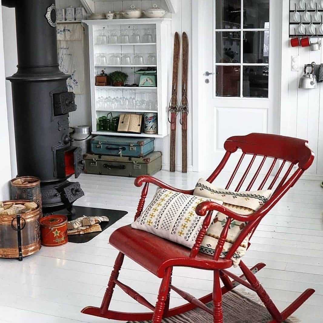 Совет: Акцент может быть не только цветовой, но и тепловой: если обстановка оформлена в холодных тонах, кресло-качалку в интерьер лучше подобрать теплого оттенка — и наоборот (фото ниже показывают, как работает такой ход).