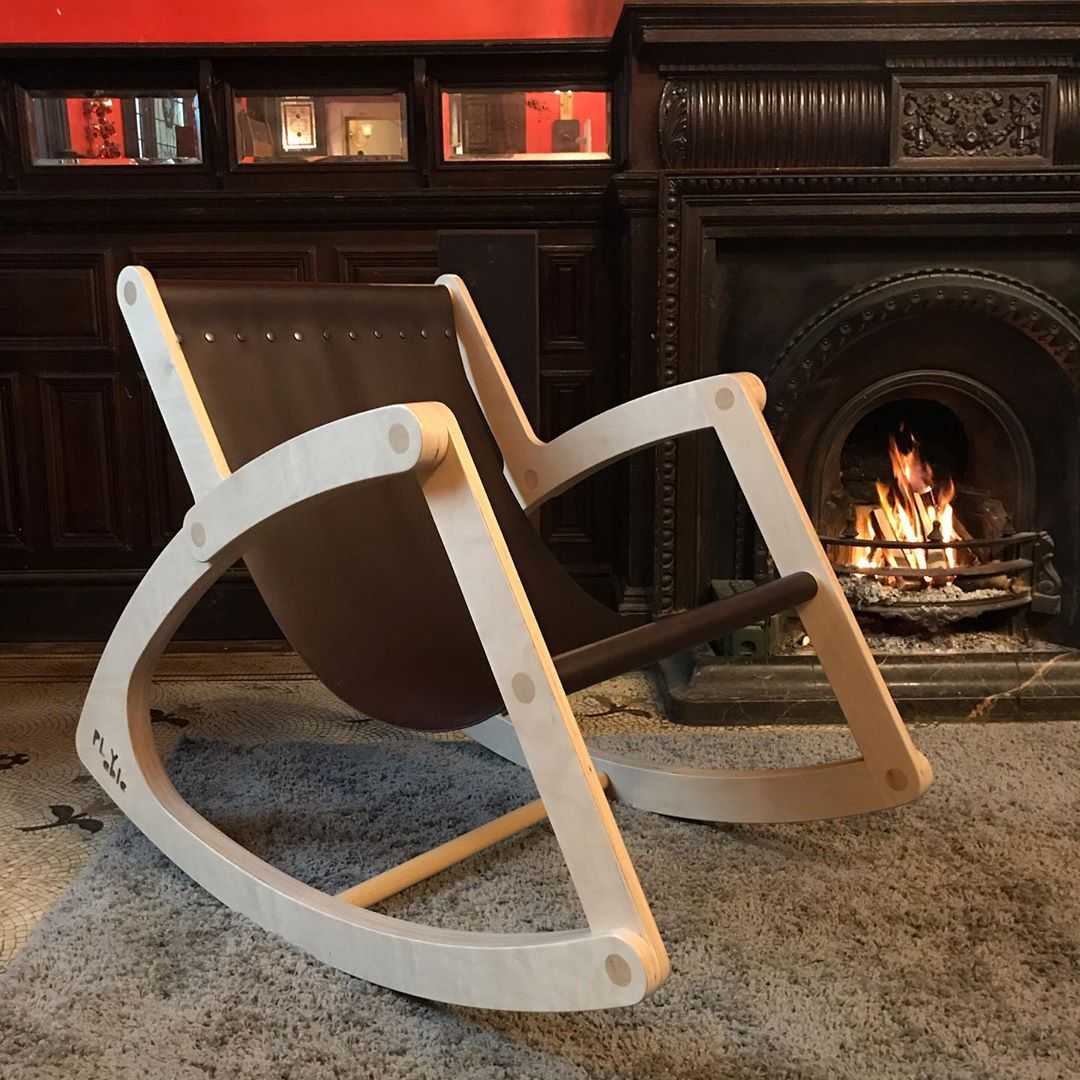 Стильное кресло-качалка в современном стиле в гостиной с камином