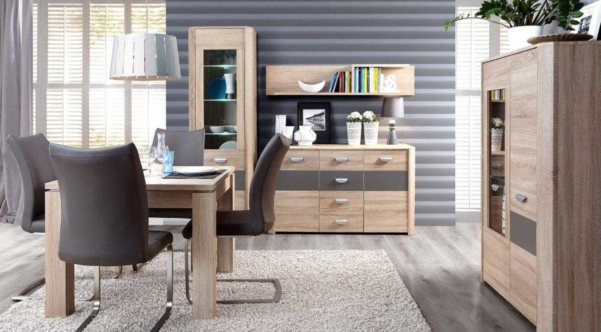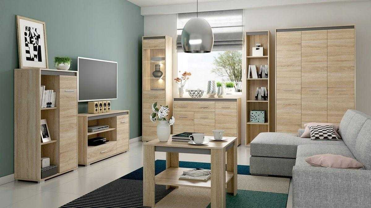 Гостиная из дуба сонома независимо от количества предметов обстановки смотрится легко, воздушно
