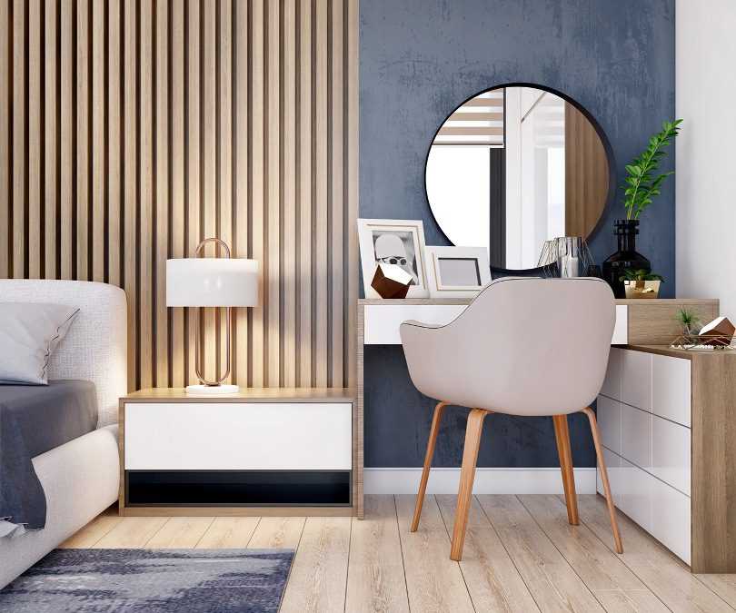 Комод из дуба сонома здесь нужен таких же светлых оттенков. Он невысок, поэтому на крышке можно расставить милые вещицы, например, изысканную вазу. Спальня почти всегда имеет туалетный столик с зеркалом. Если места совсем немного, разные функции выполнит прикроватная тумба.