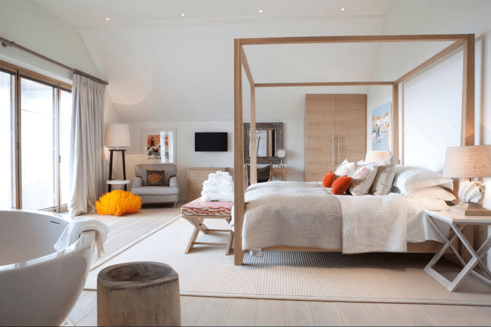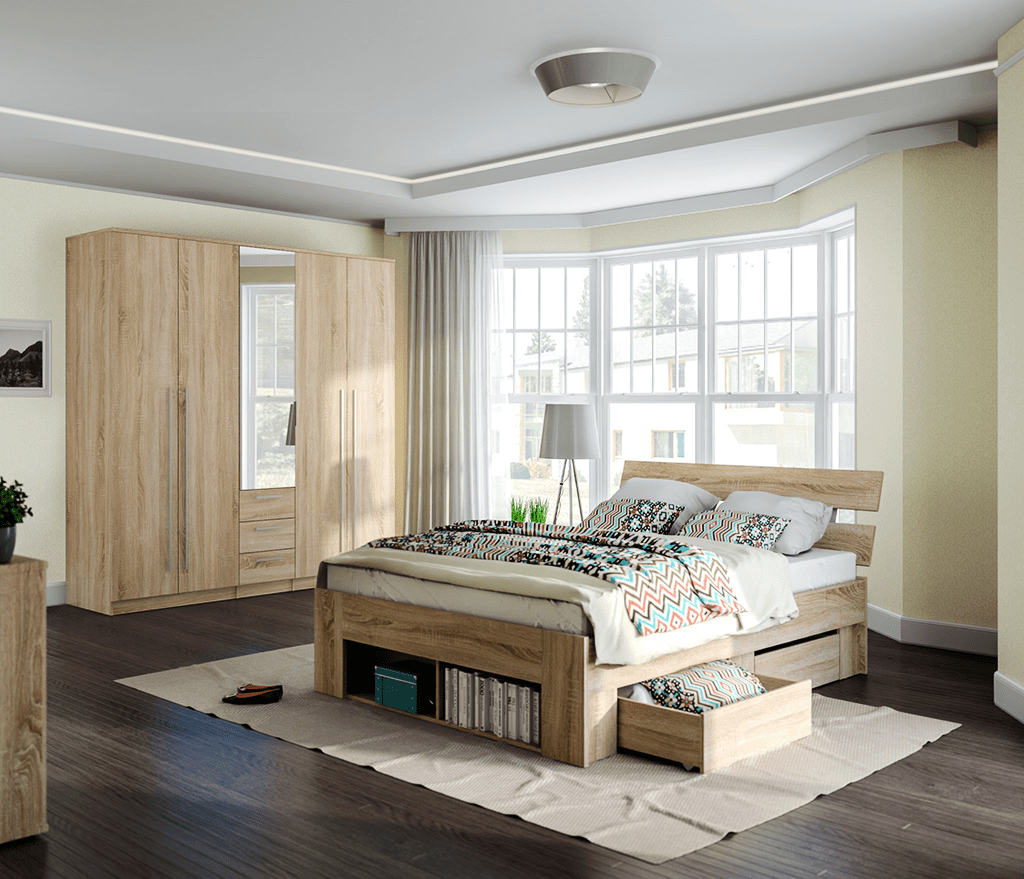 Универсальная основа из светлого дерева удачно впишется в дизайн спальни