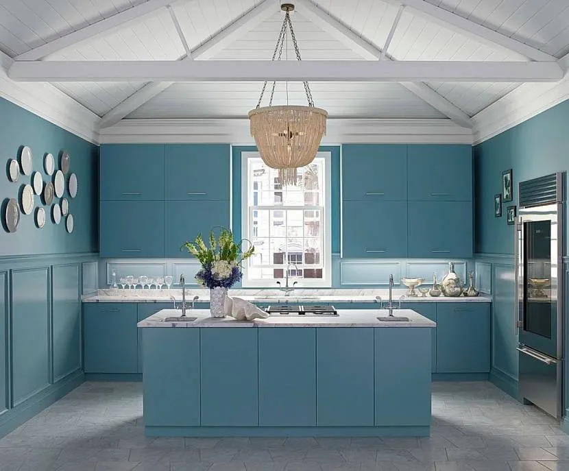 Эти светло-голубые цвета особенно хороши для небольших кухонь, так как они имеют тенденцию усиливать восприятие пространства. Для больших кухонь, где нужно создать ощущение уюта, лучше всего подойдут средние и более темные оттенки голубого.
