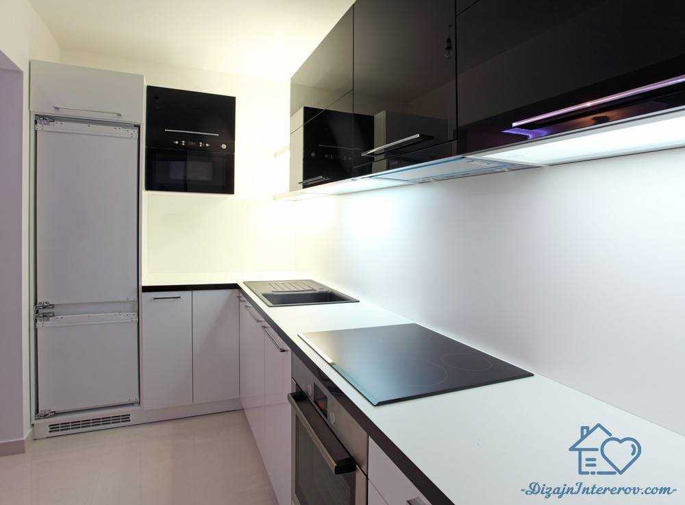 Как же правильно вписать объёмный предмет в узкую кухню? Зависит от планировки гарнитура.