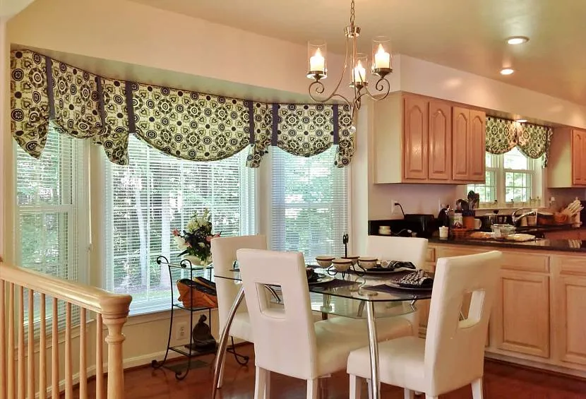Шикарные ламбрекены сразу под потолком. Темная кухня идеально смотрится со светлым окном. Интересные волны, дополненные рюшами и висюльками. Грубый пошив штор и клетчатый мотив идеально сочетаются между собой. Создают дополнительные нотки в дизайне.