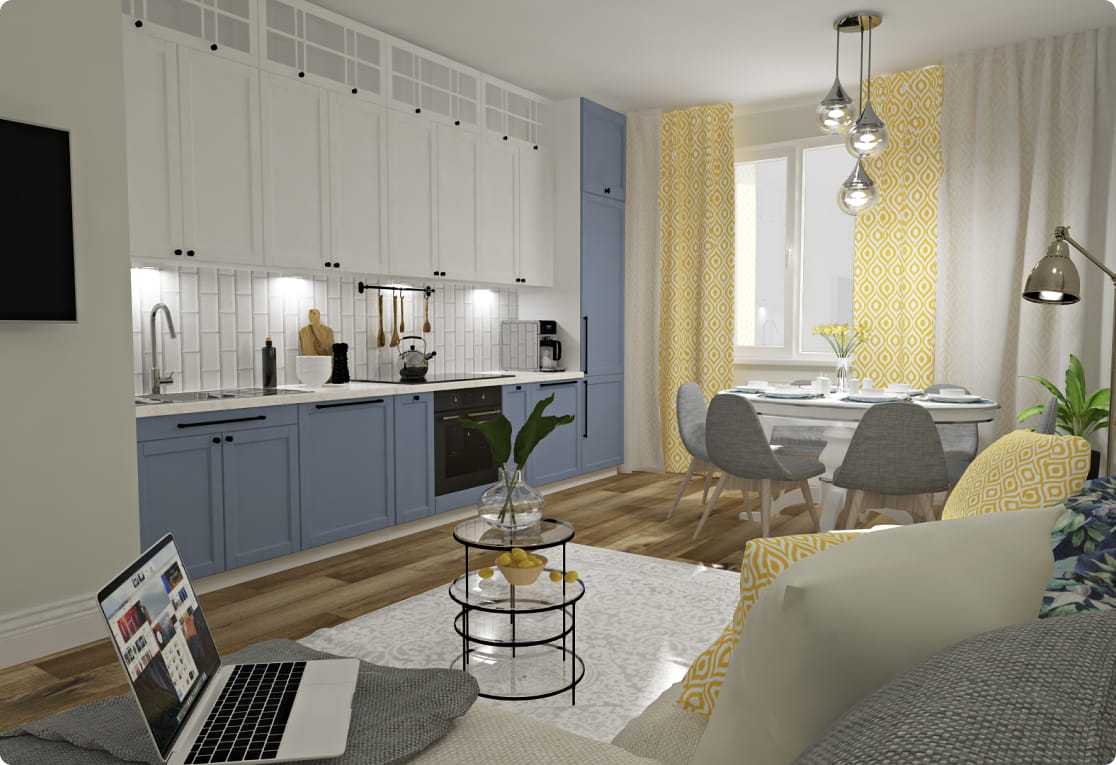 Создание визуального проекта гарнитура, который идеально впишется в помещение, расставит мебель так, чтобы оставалось место для людей.