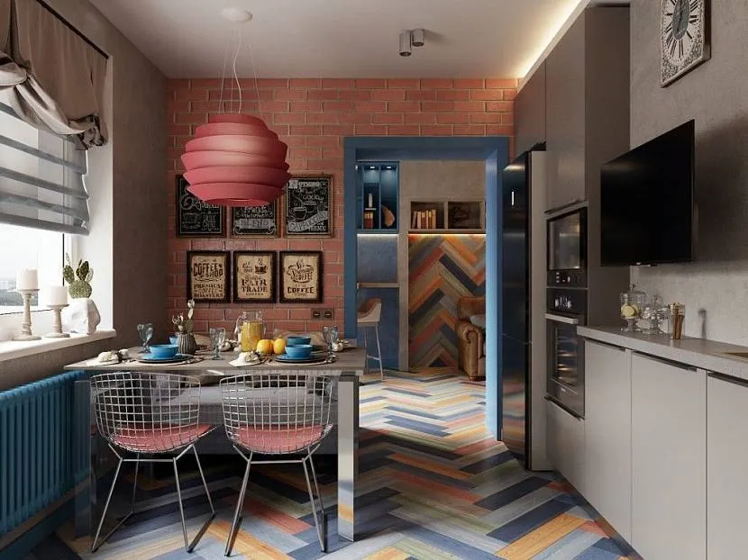 Для более дерзкого интерьера отлично подойдет текстиль с насыщенными вкраплениями ярких цветов (подушки с геометрическими узорами), изделия hand made и декоративные растения необычной формы (например, японский мох или крассула). Не стоит забывать, что кухня должна быть функциональной и практичной. Любые элементы текстиля и декора обязаны деликатно дополнять атмосферу и пространство, но не загромождать его своим изобилием.