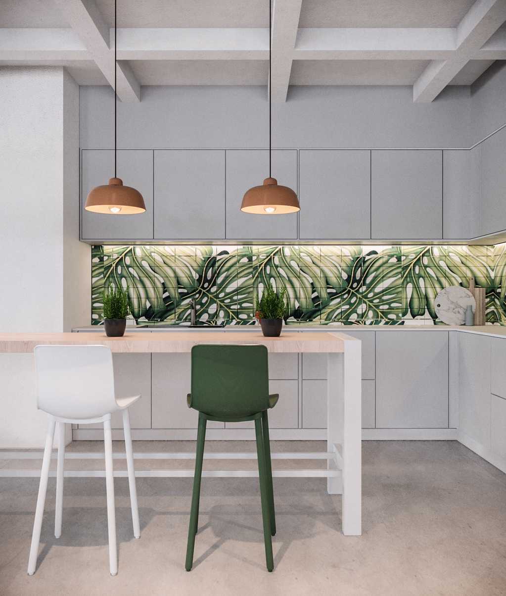 5. Серый с зеленым. Вся зеленая палитра благоприятно действует на психику человека. Хотите оформить интерьер в стиле эко? Используйте серые и зеленые цвета. В дизайн можно гармонично вписать натуральные материалы в качестве акцентов. Это может быть столешница, фартук, часть фасадов.