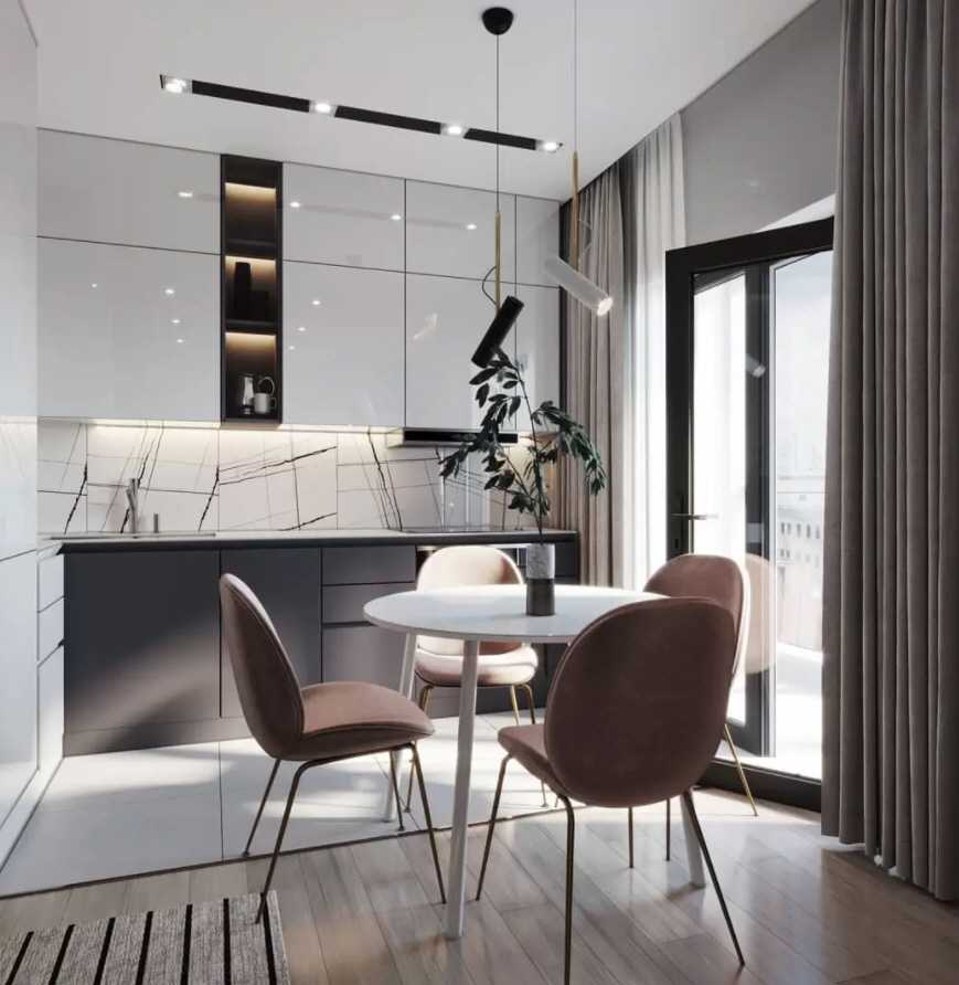 На самом деле эта гамма подойдет даже крошечным кухням в 4-6 квадратов. Шоколадный и светло-серый или цвет мокрого асфальта оптимальны для создания красивого интерьера в таких условиях.