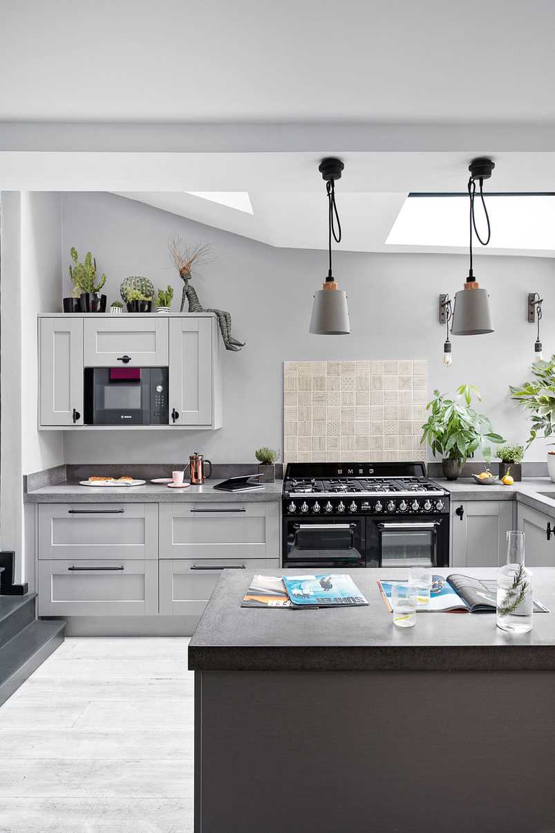 Темно-серые кухонные шкафы универсальны и стильны и заслужили свое место в качестве нового нейтрального элемента дизайна кухни. Они также представляют собой современную альтернативу полностью белой кухне.