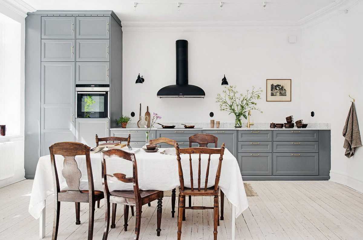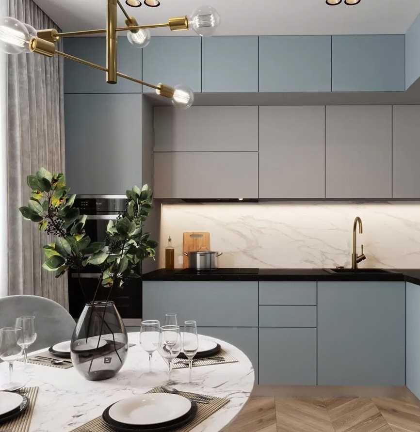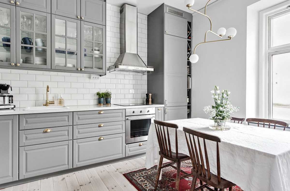 Современная классика в серых тонах — это модная альтернатива бежевой классике. Отлично сочетается с фурнитурой в виде золотых ручек в дизайне под античную бронзу, латунь, кованые изделия и т. п.