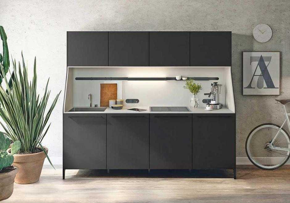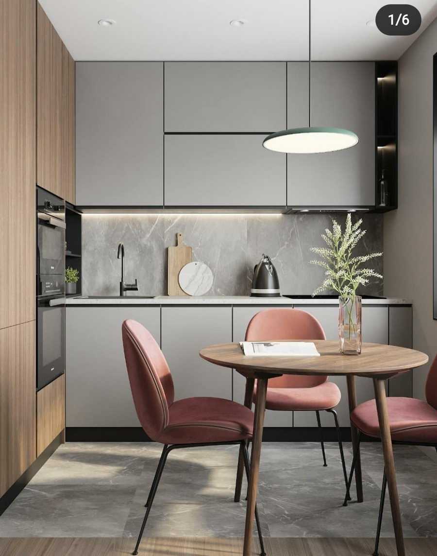 - Противоречие к универсальности просматривается на маленьких кухоньках. Серый цвет визуально их делает темными, а обстановку холодной.