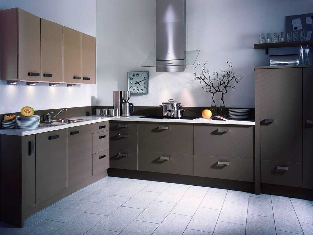 Кухня в стиле модерн в данной гамме — отличное решение. Позаботьтесь о том, чтобы в помещении было много света — коричневый в этом плане чрезмерно требователен. Если вы не хотите сделать его тускловатым, лучше убедиться, что светильников достаточно.