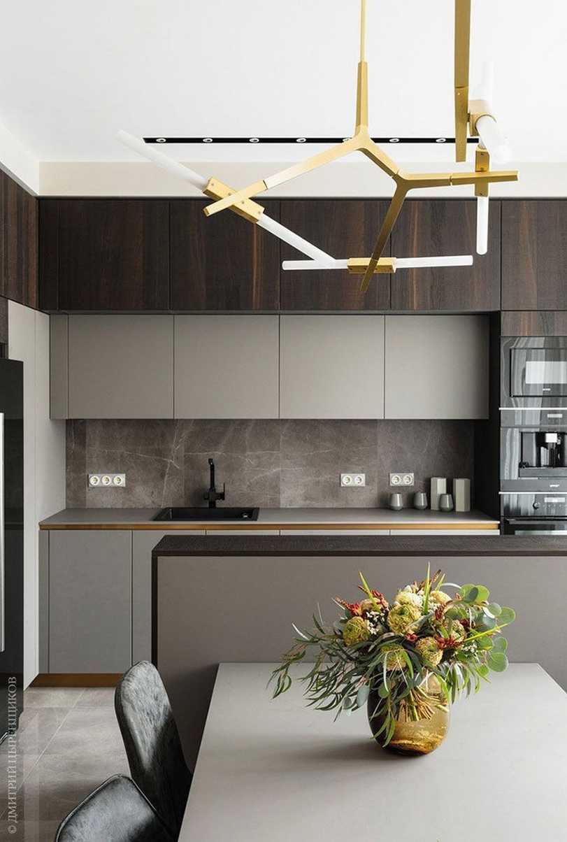 Коричневые оттенки привносят гармонию в серую кухню. Вариант для кухни в серо-коричневых тонах — это сочетание серого с натуральными оттенками, коричневым, бежевым и деревом. Тёплые оттенки бежевого и коричневого смягчат строгость обстановки и добавят теплоты. Спектр комбинаций – от тёплых до холодных тонов.