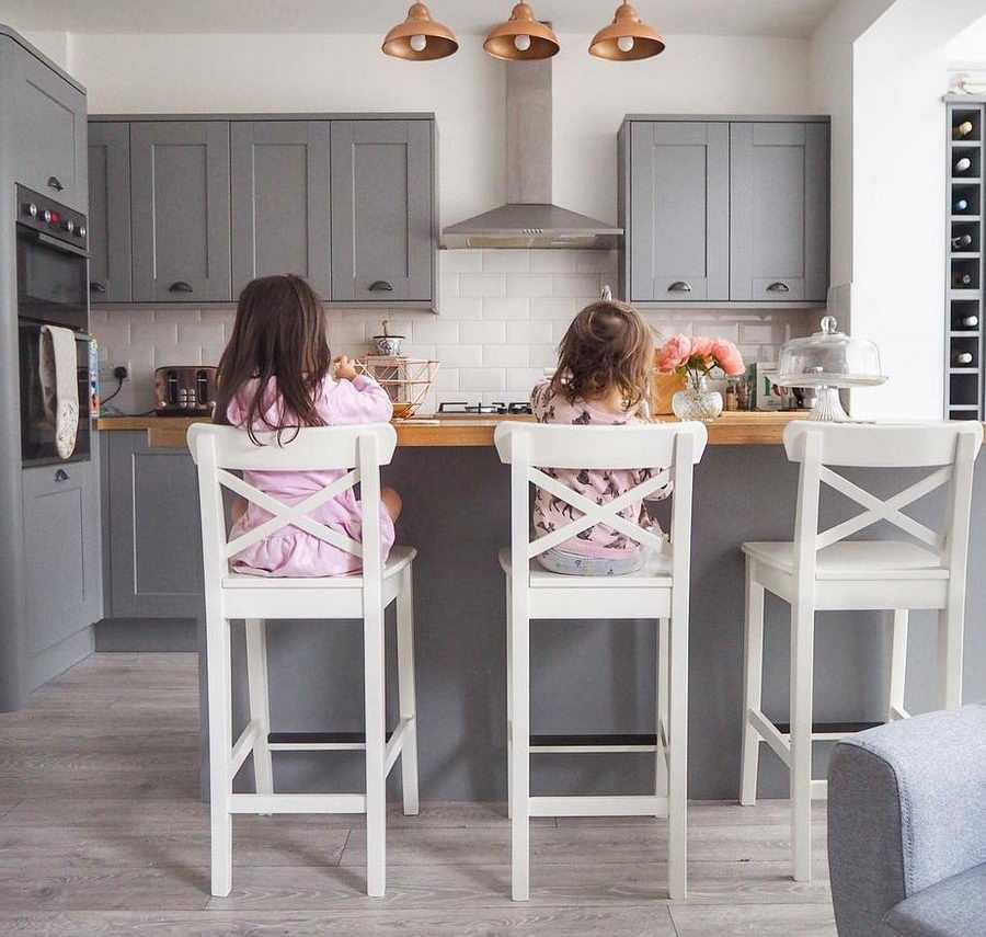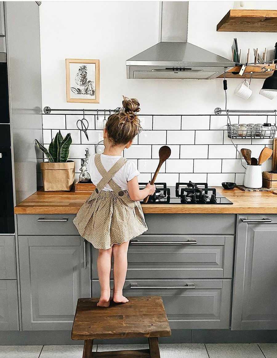 Белый, серый и деревянный с серой плиткой на фартуке?! Мы думаем, да! Это просто показывает, что нет никаких жестких правил, когда дело доходит до дизайна кухни, все дело в тонах, формах и поиске планировки, которая вам нравится!