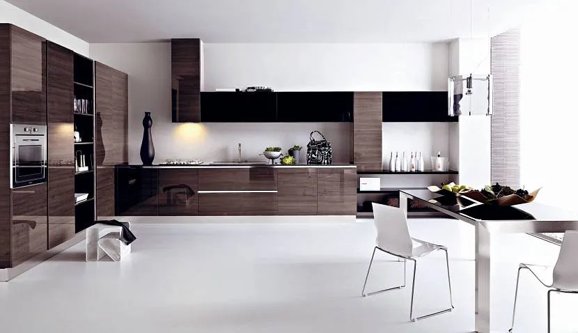 Отделка в шоколадных тонах имеет прекрасное качество и легко поддается уборке. Таким образом, поддержание чистоты и порядка на кухне, станет на много проще.
