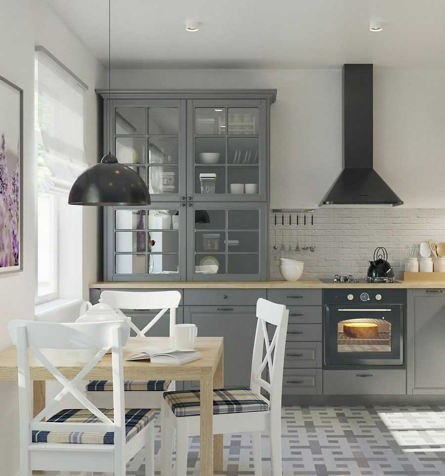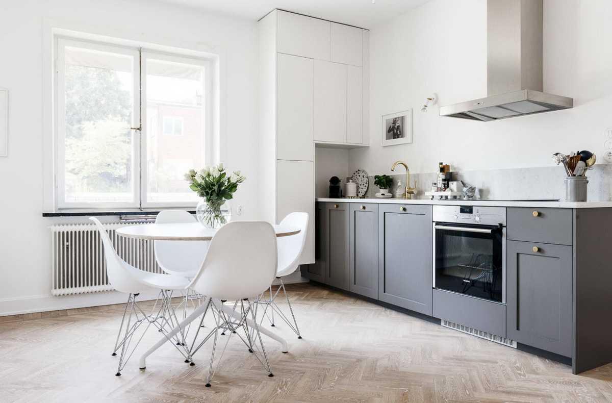 Светло-серая кухня — совершенно безрисковый вариант, потому что будет выглядеть прекрасно, независимо от размера помещения.