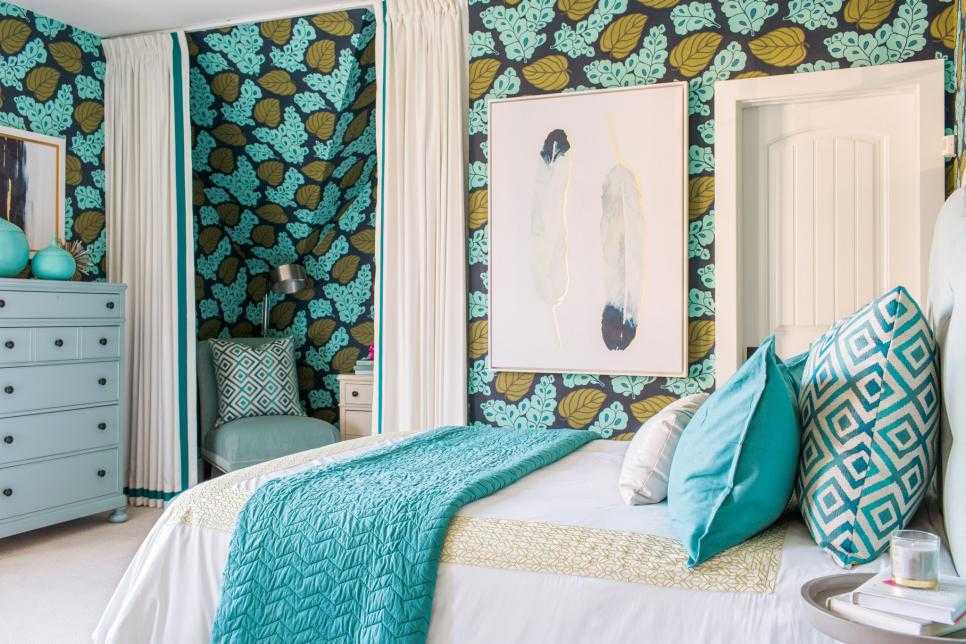 В качестве дополнения можно использовать контрастные, часто чёрно-белые картины, интересную драпировку. А обои цвета тиффани сделают ваш интерьер изысканным и неповторимым