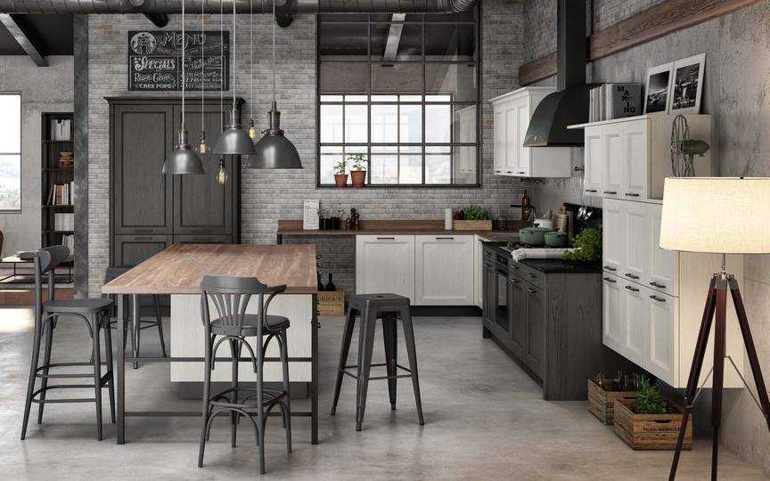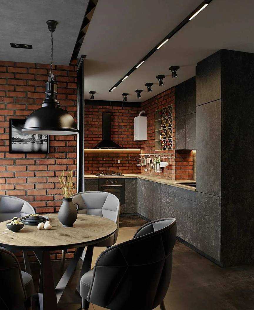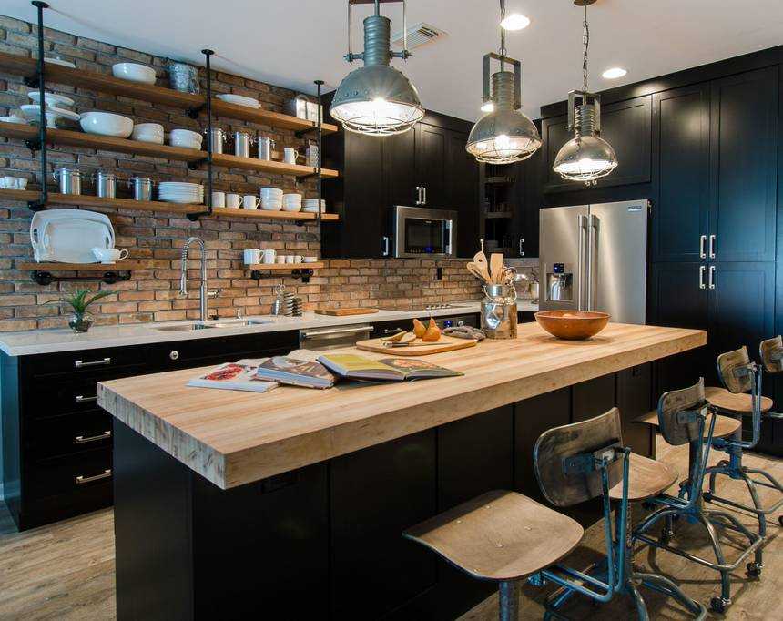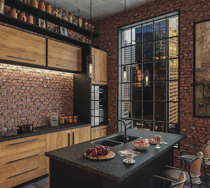 Дизайны кухонь лофт с разными планировками